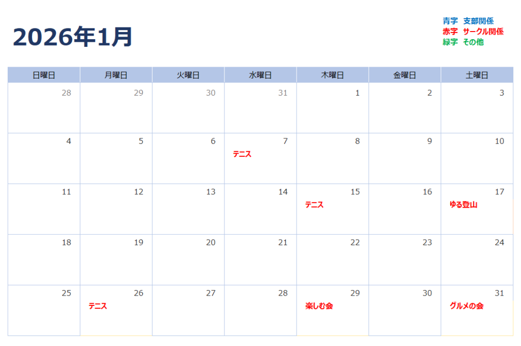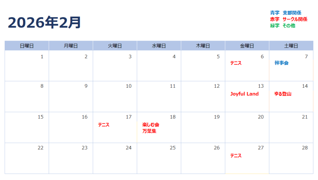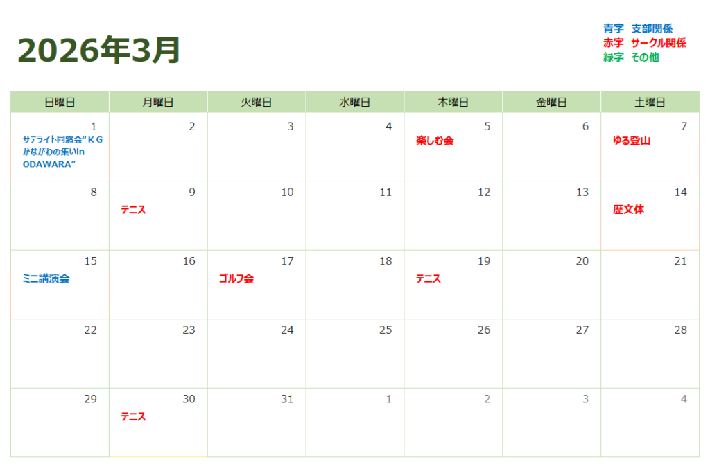 【お知らせ】行事カレンダー(2026年1月~3月)