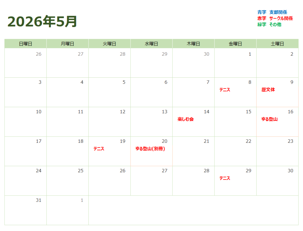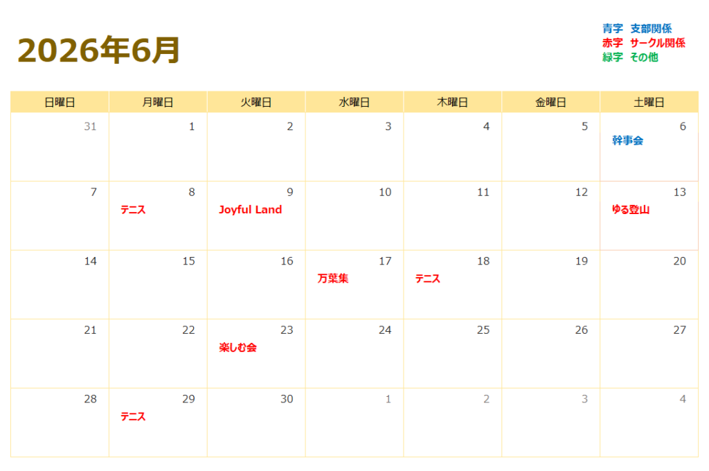 【お知らせ】行事カレンダー(2026年4月~6月)